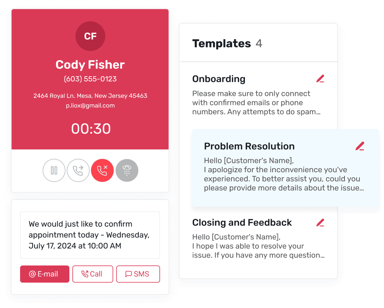 Streamline communication with pre-defined response templates for calls, texts, and emails, enhancing efficiency and maintaining a professional tone across interactions.