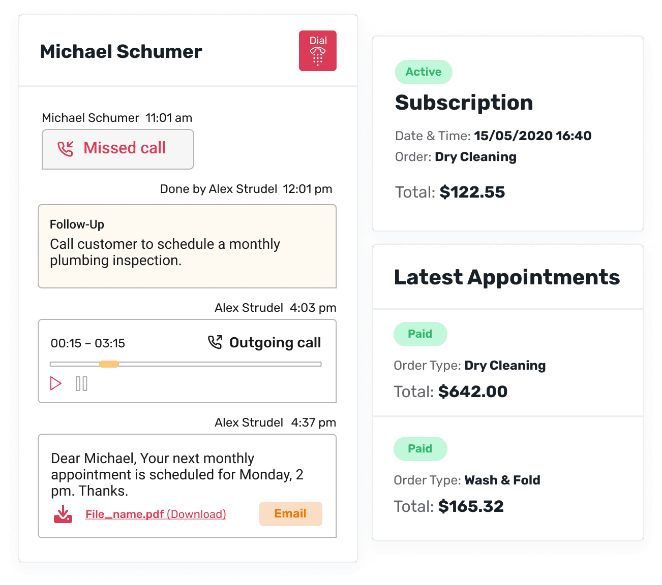 Yes, our platform maintains a comprehensive communication history, allowing you to track interactions across calls, text messages, and emails. Whether you need to review past conversations, track follow-ups, or reference previous interactions, our platform provides easy access to communication history.