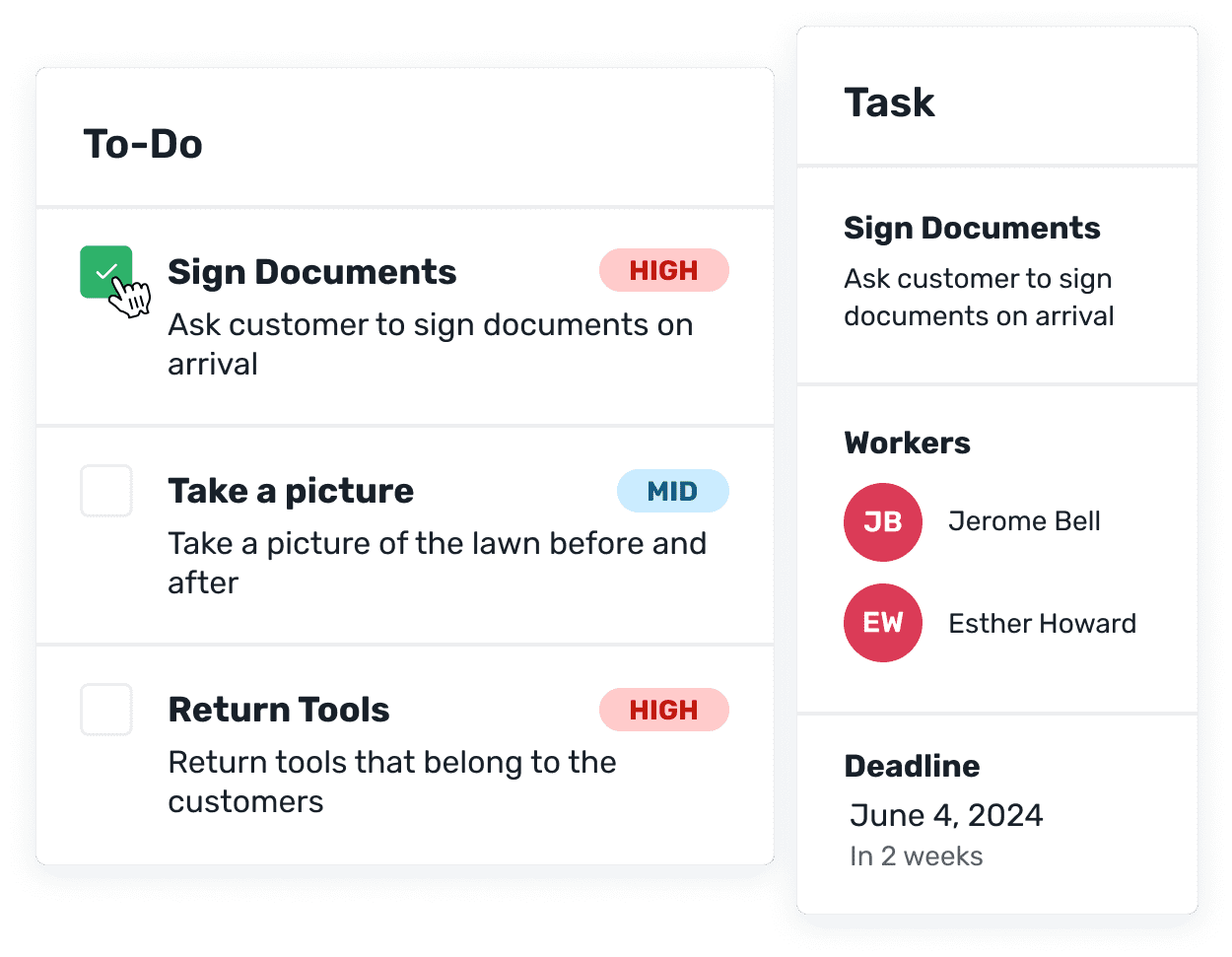 Create custom to-do lists for every service for every job and make sure it’s done right every time.