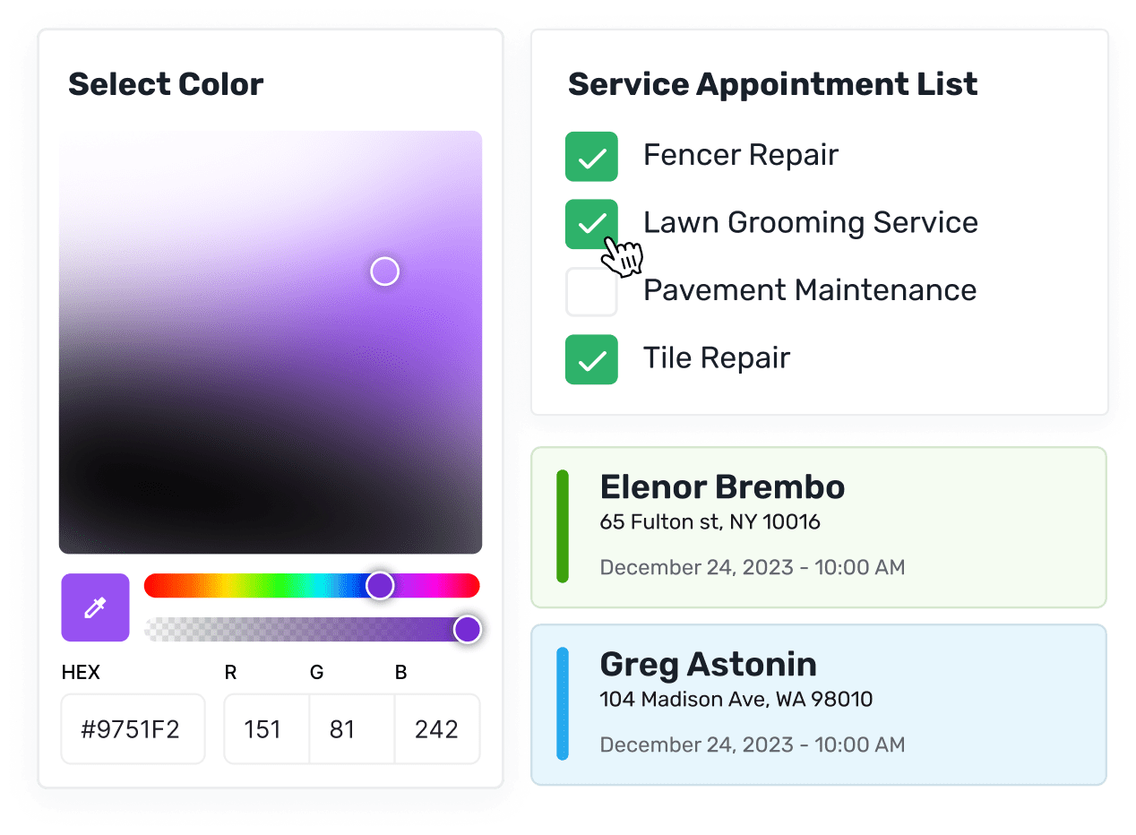 When customers submit service appointment, it shows total cost on the form itself making it first and last stop. Next you assign the worker on your end and be on your way to get it done.