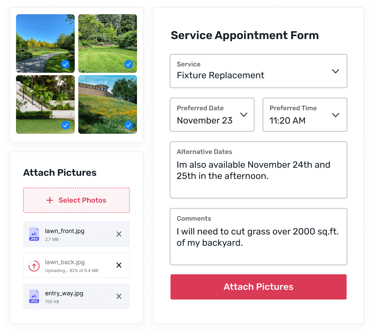 Allow customers to attach pictures to your job request forms. Send a instant quotes based on those and get job rolling within minutes.