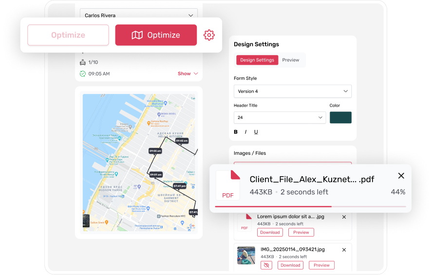 Integrate form to collect leads for jobs, allow customers provide details about the property, select few dates and times and upload pictures.